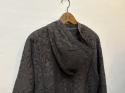 インドレースを使用したフーディタイプのブラウス。ヴィンテージ感のあるレースはシアー感があり、前ボタンを開けてレイヤードを楽しむスタイルがおすすめです。カジュアルなフーディーデザインがデニムと好相性で、薄手のインナーの上にさっと羽織るだけでスタイリングのアクセントになるアイテムです。