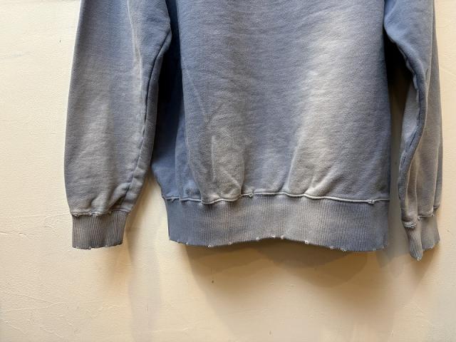 ムラ染めが特徴のハーフジップスウェットシャツ。初秋からちょうどいい厚みの10オンスの裏毛をスウェットに仕立て、製品染めとダメージ加工によりヴィンテージライクな雰囲気に仕上げています。ベーシックなシルエットでデニムと好相性!色違いで欲しくなるような幅広いカラー展開とスタイリングに映える発色で、一枚でも様になるアイテムです。