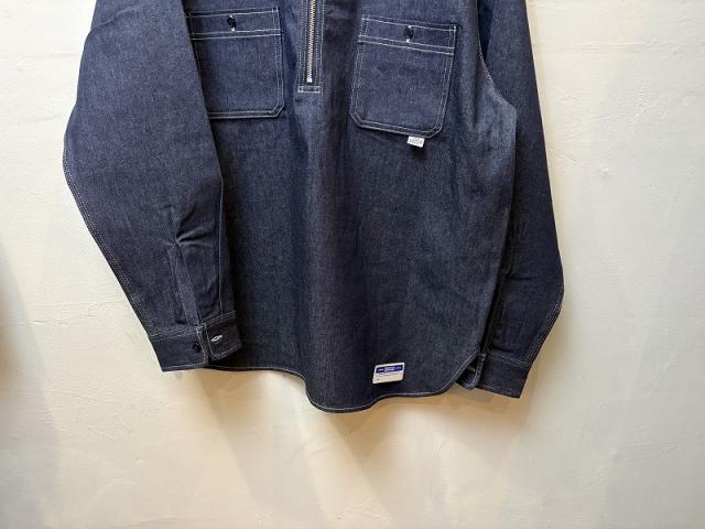シルエットは、90年代のアイテムをベースに、身幅を広く、前開きの長さも調整してプルオーバー独特の着づらさを解消しています。肉感は少し薄めの10オンスのデニムを採用。柔らかい風合いで身体に馴染みやすく、一枚着として重宝する一着です。