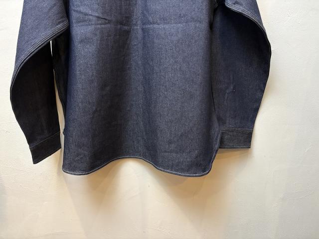 シルエットは、90年代のアイテムをベースに、身幅を広く、前開きの長さも調整してプルオーバー独特の着づらさを解消しています。肉感は少し薄めの10オンスのデニムを採用。柔らかい風合いで身体に馴染みやすく、一枚着として重宝する一着です。