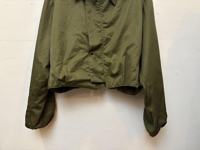 ヴィンテージのミリタリーオールインワンをリメイクしたミリタリージャケット。トレンドのショート丈ジャケットにアレンジしたデザインで、本格的な生地の風合いが特徴です。作り手がクリエーションしながら作成しているため、世界に一つだけのデザインとなっております。