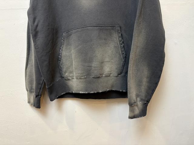 ムラ染めが特徴のスウェットパーカー。10オンスの裏毛をスウェットに仕立て、製品染めとダメージ加工によりヴィンテージライクな雰囲気に仕上げています。ベーシックなシルエットがデニムと好相性で、ラフにカットしたスキッパーデザインは顔回りをすっきりと見せてくれます。暑い時期には中にインナーを入れて、寒い時期にはアウターを重ねてレイヤードアイテムとしても重宝する一着。