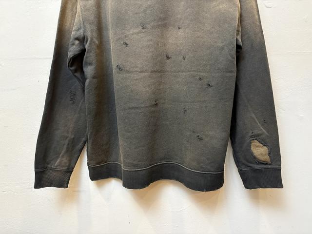 加工感にこだわったヴィンテージなクルーネックスウェット。やや薄手の7.4オンスの裏毛を使用しており、ダメージ加工、さらに随所にリメイク加工を施しヴィンテージライクな雰囲気をプラス。また、製品染めをすることで、経年変化を感じるムラ感のある表情に仕上げています。