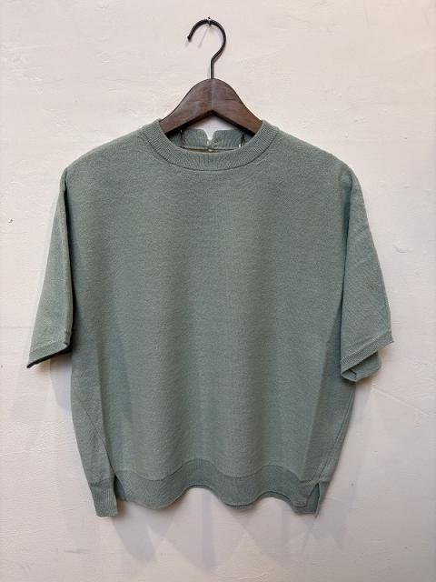 半袖プルオーバーは一見シンプルな半袖ニットですが、実はドルマンスリーブで、身頃脇を少し前にずらすことで、横から見た際にもスマートに見える仕様にしています。