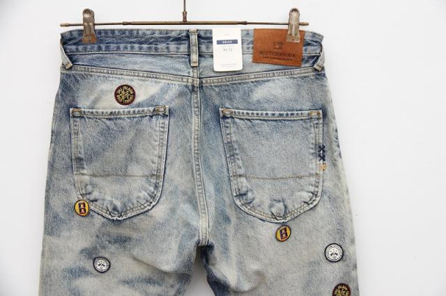 オランダのアムステルダム発のブランド、SCOTCH&SODAより、Deanタイプ(ルーズテーパードシルエット)のパッチダメージジーンズです。腰回りがゆったりで、ゆるくテーパードのシルエットが無骨で格好良く、どんなトップスにも合わせやすくなっております。インパクトのあるパッチと色落ち・ダメージ加工のデザイン。遊び心満載の一本です。バックポケットのXXX、内側の生地使い、ボタンなど細部にこだわりが詰まっていて、楽しく穿き続けていただけます。