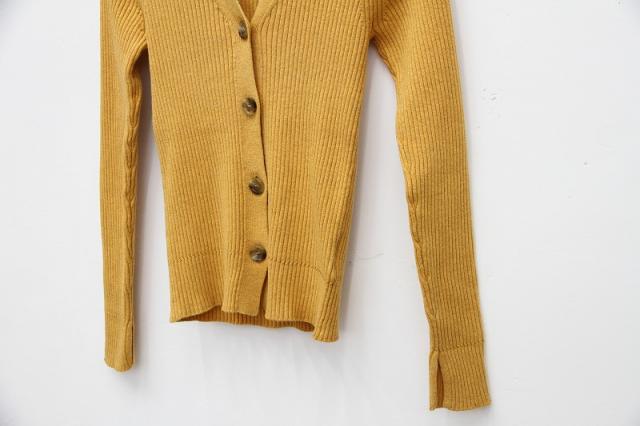 コンパクトなシルエットで伸縮性のあるVネックリブカーディガンです。すっきりとシャープなVネック、身幅袖幅ともにスマートなデザインでほどよく身体にフィットして女性らしいシルエットをお楽しみいただけます。 重ね着のミッドレイヤーにもぴったり。コンパクトで無駄のない洗練されたシルエット、はっと目を引く差し色でコーディネートに華をプラスすることができます。