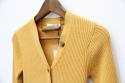 コンパクトなシルエットで伸縮性のあるVネックリブカーディガンです。すっきりとシャープなVネック、身幅袖幅ともにスマートなデザインでほどよく身体にフィットして女性らしいシルエットをお楽しみいただけます。 重ね着のミッドレイヤーにもぴったり。コンパクトで無駄のない洗練されたシルエット、はっと目を引く差し色でコーディネートに華をプラスすることができます。