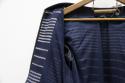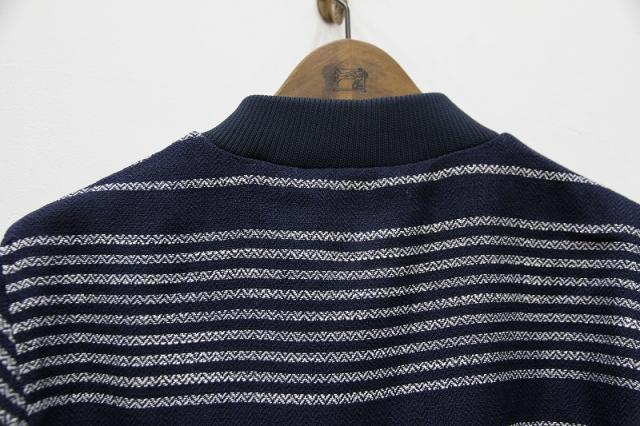 フルジップのブルゾンです。ボーダーが特徴でコーディネートのアクセントにしてもバランスがとりやすい配色です。光沢のある糸を織り込んでいるためカジュアルすぎず、キレイにも着て頂けます。春秋にざくっと羽織れる使いやすいアイテムです。