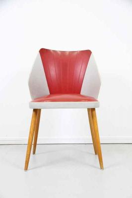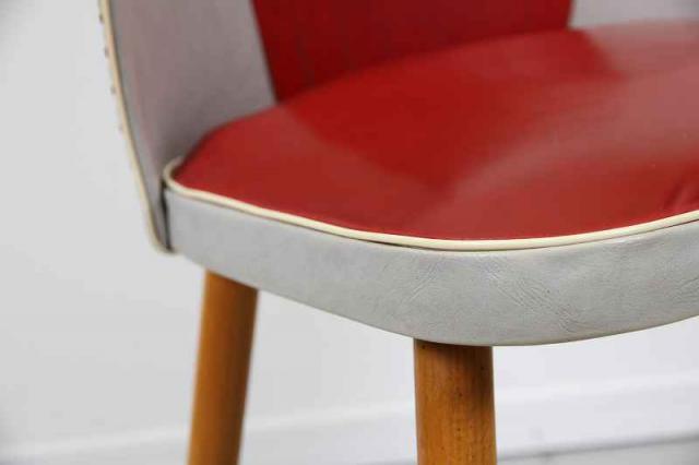 ドイツ製50'sヴィンテージのレトロなカクテルチェアです。ミッドセンチュリーの時代らしく曲線を描いた美しいフォルムが特徴的なチェア。インテリアとしても映える赤とグレーの配色と、美しく伸びる脚。ダイニングチェアやデスクチェアなど、幅広くお使い頂けます。