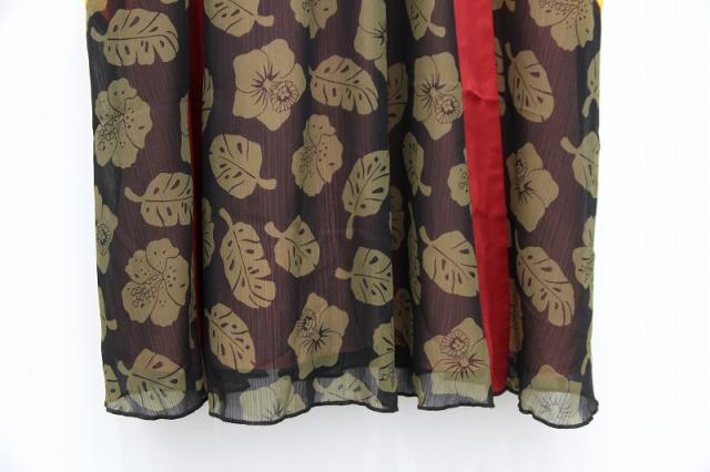 とても軽く柔らかなシフォン素材を用いた、透け感のあるワンピースです。雰囲気のある、ブロックリーフと花柄のミックスデザインです。襟元はラウンドネック仕様で涼し気な印象に。細身パンツを合わせてカジュアルにしたり、ヒール靴を合わせてエレガントなコーディネートにしたりと、様々なコーディネートが楽しめます。2枚生地仕様なため透けません。
