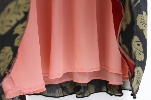 とても軽く柔らかなシフォン素材を用いた、透け感のあるワンピースです。雰囲気のある、ブロックリーフと花柄のミックスデザインです。襟元はラウンドネック仕様で涼し気な印象に。細身パンツを合わせてカジュアルにしたり、ヒール靴を合わせてエレガントなコーディネートにしたりと、様々なコーディネートが楽しめます。2枚生地仕様なため透けません。