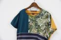 生地がパッチワーク状に縫いつなげられており、前、後ろのデザインも異なるところがポイントです。