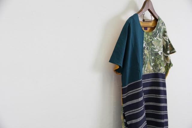綿と麻の素材を使用した一点物のワンピース。
