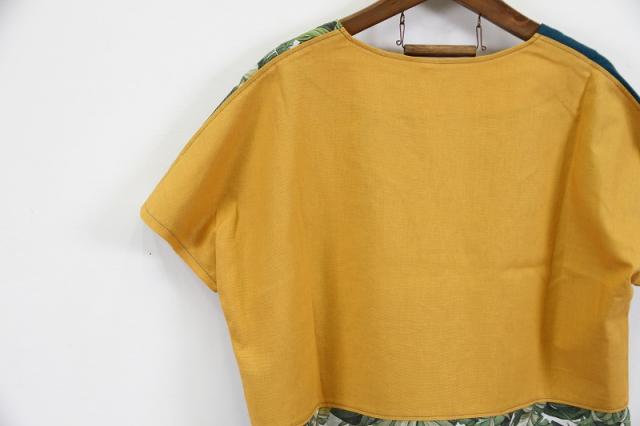 生地がパッチワーク状に縫いつなげられており、前、後ろのデザインも異なるところがポイントです。