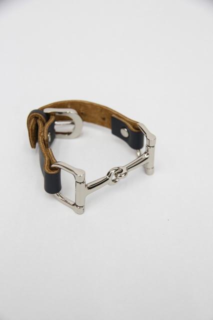 ホーススナッフルビットのパーツとレザーベルトが品のある雰囲気を漂わせるIDEANAのレザーブレスレット。腕時計とも相性のいいデザインです。