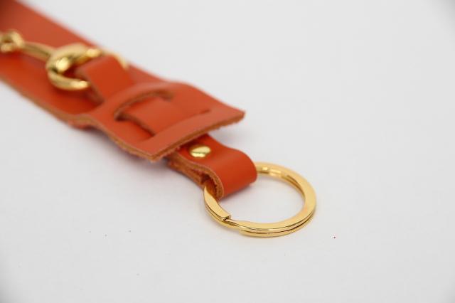 ホーススナッフルビットのパーツとレザーが品のある雰囲気を漂わせるIDEANAのキーホルダー。バッグチャームとしてもおすすめです。