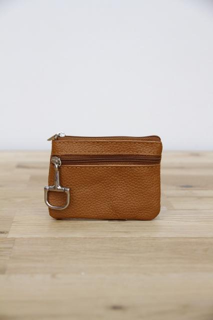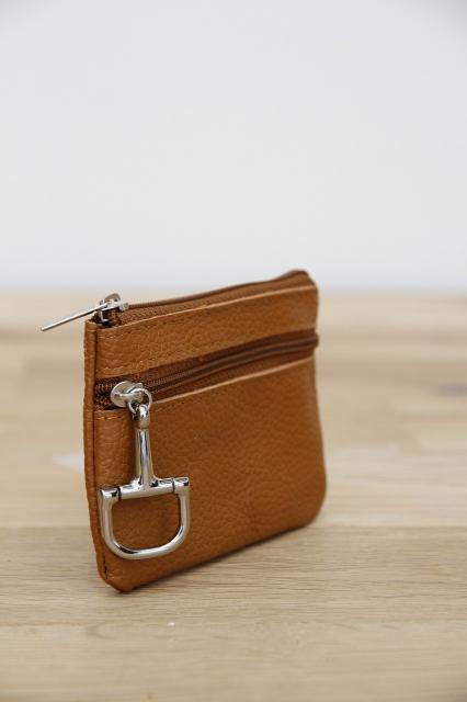 ホーススナッフルビットのパーツがアクセントに、品のある雰囲気を漂わせるIDEANAのレザーコインケース。中には鍵を付けられるリングが付いています。