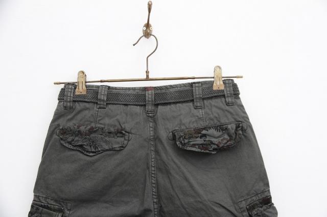 ポケット部分の花柄が色気を感じさせる、ベルト付きショートパンツです。しっかりした生地感でカーゴパンツのテイストを盛り込んでおります。全体的に落ち着いた色味なため、コーディネートに迷わずラフに穿くことができます。