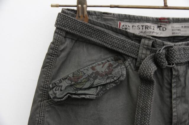ポケット部分の花柄が色気を感じさせる、ベルト付きショートパンツです。しっかりした生地感でカーゴパンツのテイストを盛り込んでおります。全体的に落ち着いた色味なため、コーディネートに迷わずラフに穿くことができます。