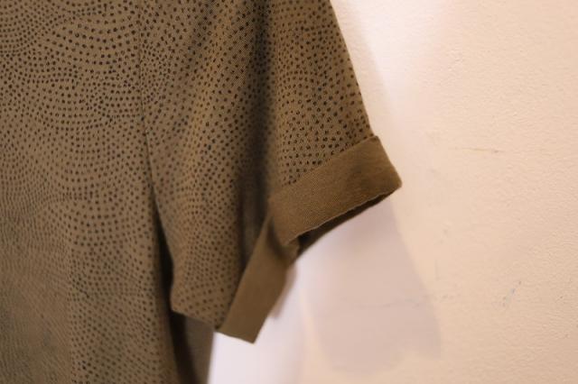 波紋のように広がるドット柄のプリントが特徴的なティーシャツ。肌ざわりがよく、ひんやりと涼しいレーヨンを含んでいるため夏でも快適な着心地です。