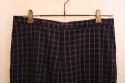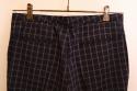 季節を問わず穿きやすいネイビーのチェックパンツです。 太ももがゆるく、足首が細くなったカットがとてもエレガントです。メゾンスコッチのメタルロゴがフロントポケットの下に縫い付けられています。