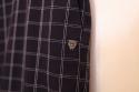 季節を問わず穿きやすいネイビーのチェックパンツです。 太ももがゆるく、足首が細くなったカットがとてもエレガントです。メゾンスコッチのメタルロゴがフロントポケットの下に縫い付けられています。