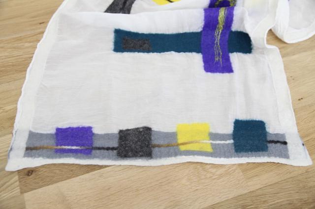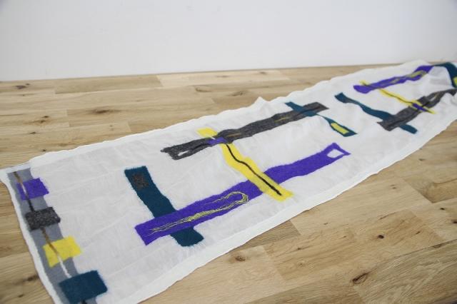 カラフルな色と、異素材を組み合わせたデザインが特徴的なSheepcountのストールです。シルクとウールの組み合わせは、通気性、保湿性、保温性を兼ね備えた素材感。長い期間お使いいただけます。