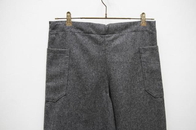 ウール素材の生地なので秋冬シーズンに最適です。もんぺを現代風にアレンジしたような変わったなシルエットが特徴。ウエストは紐で調節可能、男女兼用の一本です。