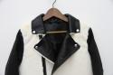 異素材とバイカラーが目を引くライダースジャケットコートです。腰下までの丈感ですが全体がレザーではないので重たくならず、袖部分も動かしやすくなっております。一風変わったレザージャケットをお求めの方はぜひ!