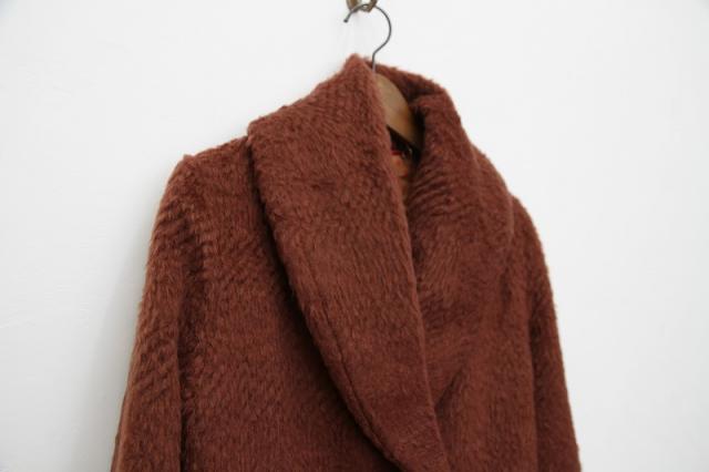 モコモコと温かいウールのコートです。ショールカラーなので首元のボリュームにより暖かさのみならず小顔効果も。高級感の漂う素材感と、裏地のドット柄が可愛いアイテムです。ドレスの上に、またはお気に入りのジーンズやスカートと合わせたりと、非常に使い勝手の良いコートになります。