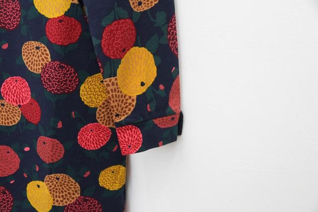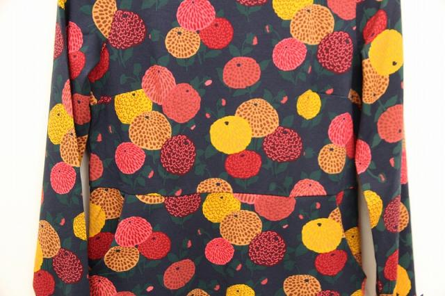 オーガニックコットンを使用したワンピースです。細めのキレイなシルエットでストレッチ性のある素材なので動きやすさも抜群です。特徴的な柄なので無地のカーディガンやジャケットなどと合わせて頂くだけでも、華やかなスタイルが作れます。コーディネートを楽しくしてくれる一着です。