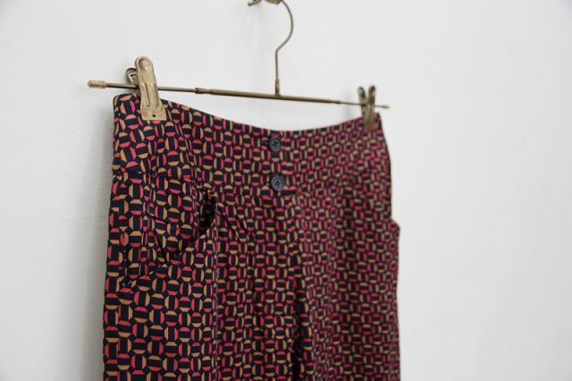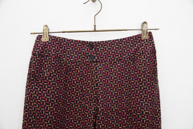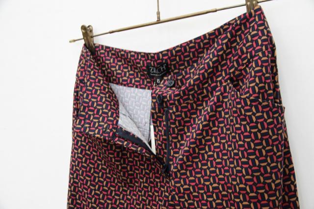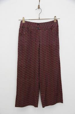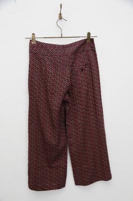 ビスコース素材が高級感を漂わせる、ハイウエストのワイドトラウザーです。特徴的な柄が無地のシャツやニットなどと合わせて頂くだけでも、華やかなスタイルが作れます。九分丈ですっきり見えするのでオールシーズンの着用が可能です。