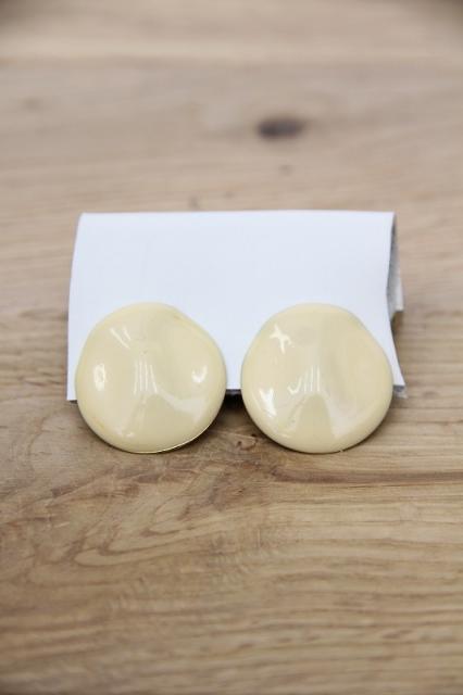 アメリカ製、うねりのある丸形のヴィンテージイヤリングです。クリーム色のようなカラーとレトロな雰囲気が特徴的!