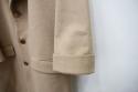 繊度が16マイクロンクラスの超極細ウールを使用しました。そのウールに、カシミヤ紡績時に抜け落ちたカシミヤを30%混紡しました。(リサイクルカシミヤと呼ばれます。)コートのパターンはメンズのロングコートをほんの少しだけ調整したため、シャープさが色濃く残ります。着用時に生地を手でなでた際にカシミヤの滑らかさを感じる贅沢なロングコートです。袖を折って着て頂けるように、袖口の裏地との切り替えし部分を深くしております。