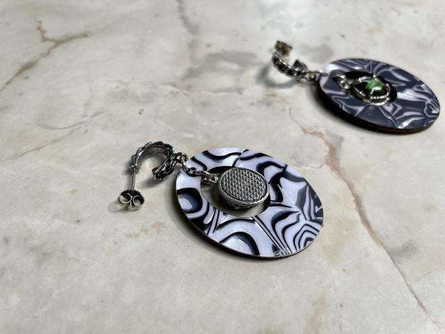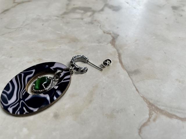 唯一無二の特別感を味わえる、Gem Kingdomのピアス。柄の存在感と、グリーンタイガーアイがクールな印象に。
