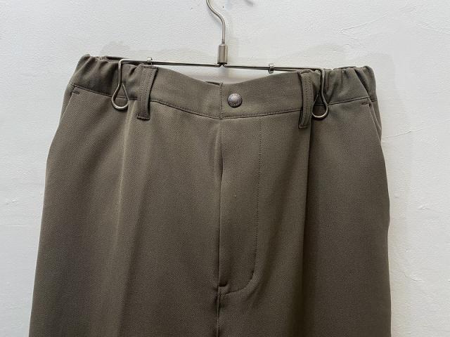 ポリエステルとレーヨンを合わせた素材にストレッチ性を持たせたワイドイージーパンツ。肌の表面温度を常に快適な温度に保つ機能素材、アウトラスト糸を採用しています。縦横の2方向に伸縮する2WAYストレッチ生地とウエストゴムでストレスフリーな穿き心地に。ソフトな生地感を活かしたドレープが存在感を演出します。