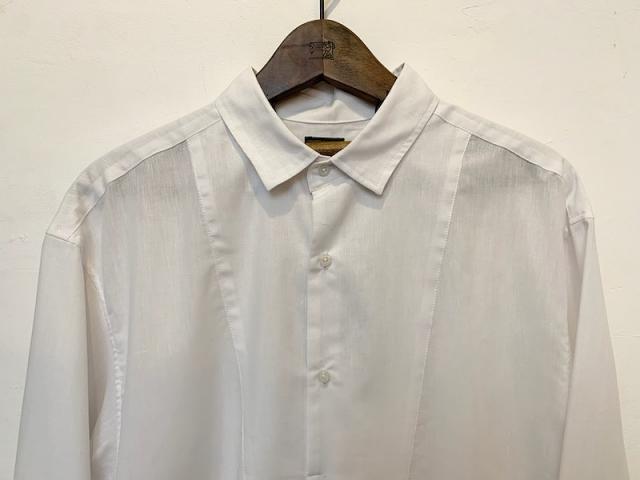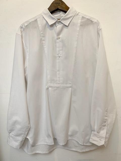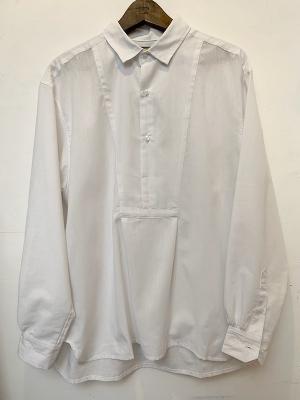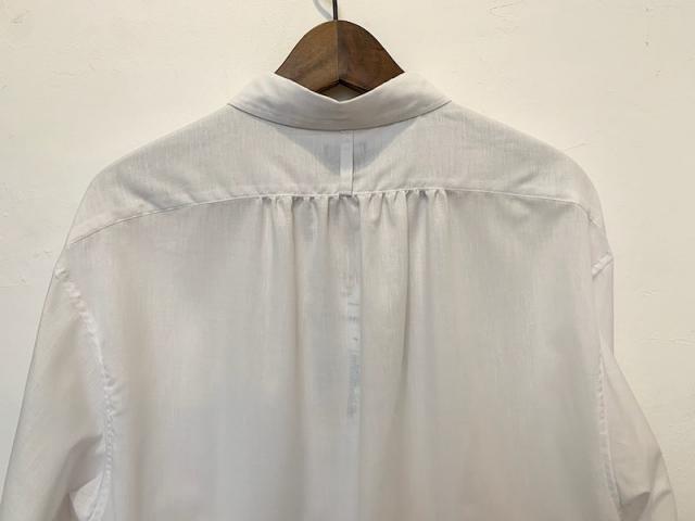 デザインは1900年代前後のフランスのアンティークシャツをモディファイしたデザイン。ユーロヴィンテージによく見られるバック、カフス上のギャザー、小さめの襟など当時の特徴的な要素がふんだんに入っているアイテムです。