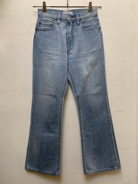 9オンスのデニム生地を使用したブーツカットジーンズです。ライトオンスで軽くストレスフリーな穿き心地が魅力のアイテムです。表面にムラのある糸を使っているため、メリハリと深みのある生地の表情も楽しんで頂けます。人気が高く希少になりつつある80年代のジーンズがデザインモチーフ。内股部分に目立ち過ぎないステッチを使うことでデザイン性の高いアイテムとなっております。