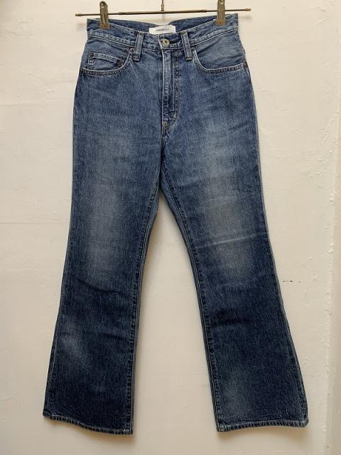 9オンスのデニム生地を使用したブーツカットジーンズです。ライトオンスで軽くストレスフリーな穿き心地が魅力のアイテムです。表面にムラのある糸を使っているため、メリハリと深みのある生地の表情も楽しんで頂けます。人気が高く希少になりつつある80年代のジーンズがデザインモチーフ。内股部分に目立ち過ぎないステッチを使うことでデザイン性の高いアイテムとなっております。