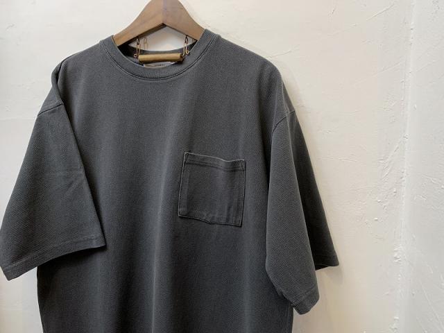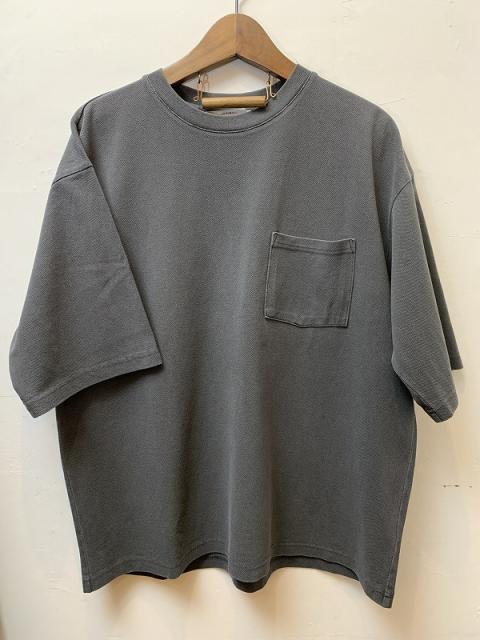 細かく目の詰まった鹿の子生地を使用した半袖ポケットTシャツ。鹿の子生地にピグメントダイ加工を施すことで、古着のような無骨な雰囲気を再現しています。凹凸のある生地の表情に、しっかりとした加工感が感じられる一枚に仕上がっています。 ゆったりとしたリラックス感のあるシルエットで、シンプルながら一枚でも様になるアイテムとなっております。