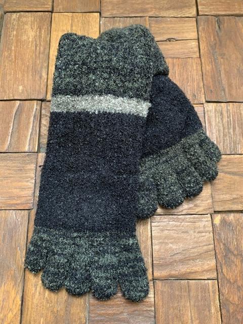 5本指の暖かソックスです。糸の染色の段階でカモミール成分とカプサイシン(唐辛子)を練り込んでいます。それにより、履いてすぐに暖かさが足全体を包みます。