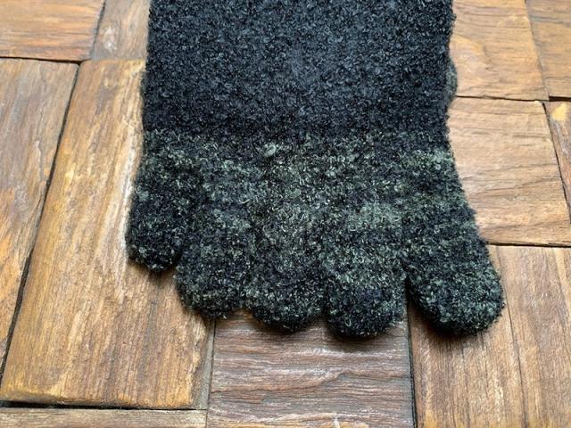 5本指の暖かソックスです。糸の染色の段階でカモミール成分とカプサイシン(唐辛子)を練り込んでいます。それにより、履いてすぐに暖かさが足全体を包みます。