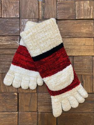 5本指の暖かソックスです。糸の染色の段階でカモミール成分とカプサイシン(唐辛子)を練り込んでいます。それにより、履いてすぐに暖かさが足全体を包みます。