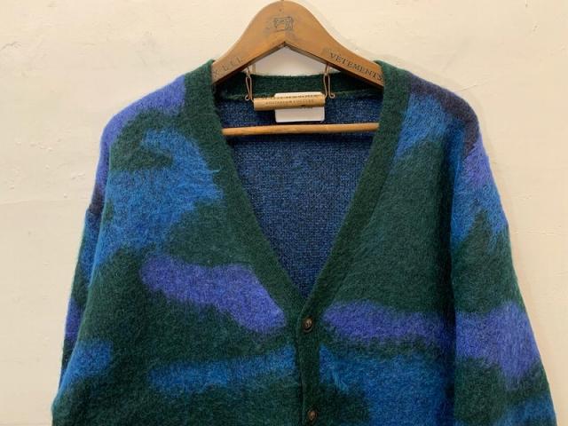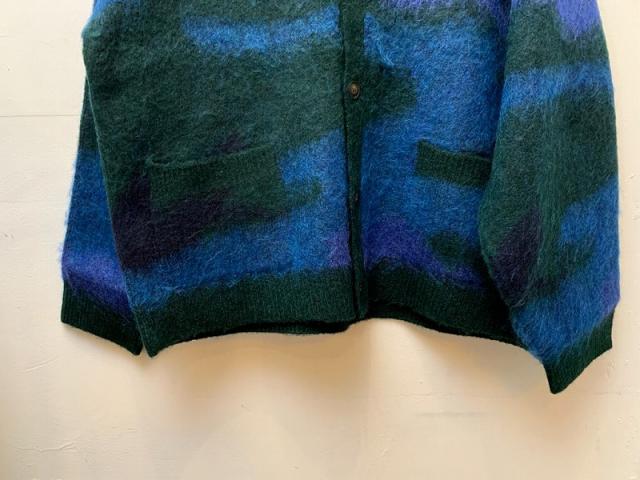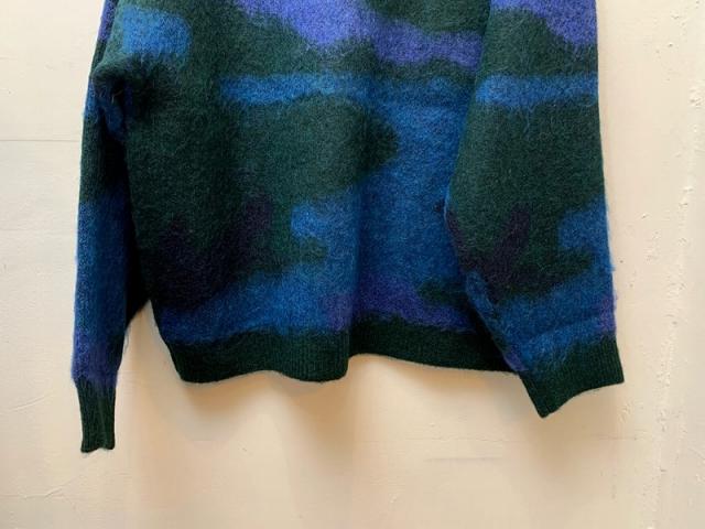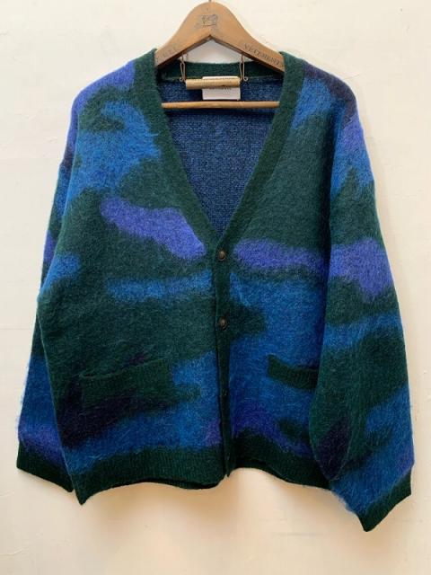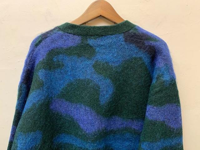 膨らみのあるモヘア混の糸を使用したニットカーディガン。表面に少し起毛をかけることで温かみとシャギー感を表現しました。自由なカラー配色で表現したカモフラージュ柄は、シンプルになりがちな秋冬コーディネートのアクセントにおすすめの1枚です。
