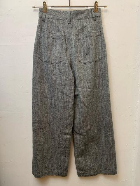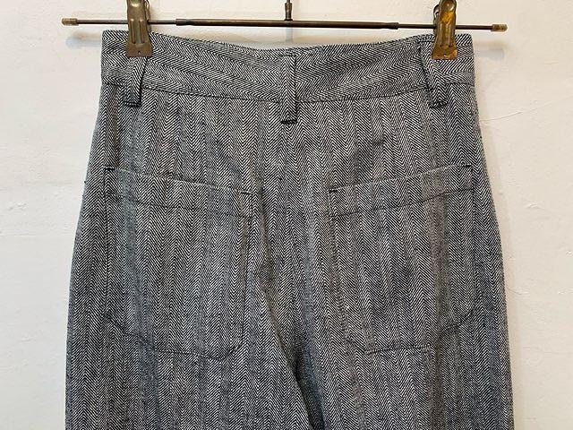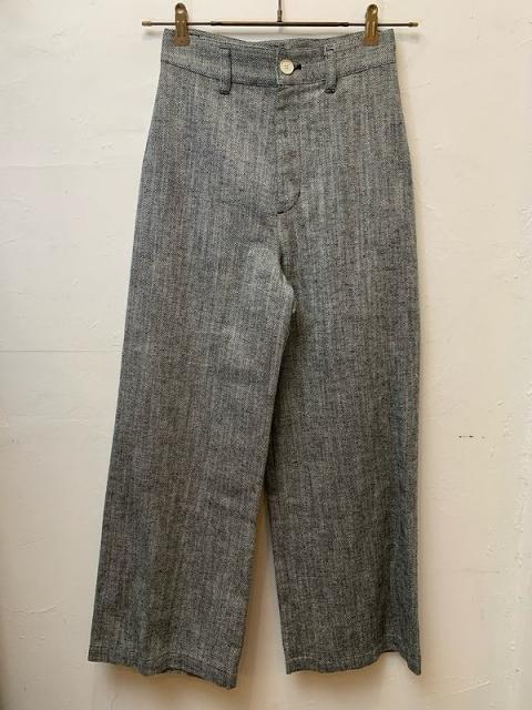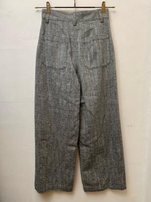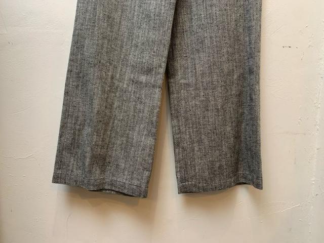 コットンリネンのヘリンボーン生地を使用したパンツ。天然繊維の自然な特性を活かした粗野感のある風合いで、クールな雰囲気に仕上げております。