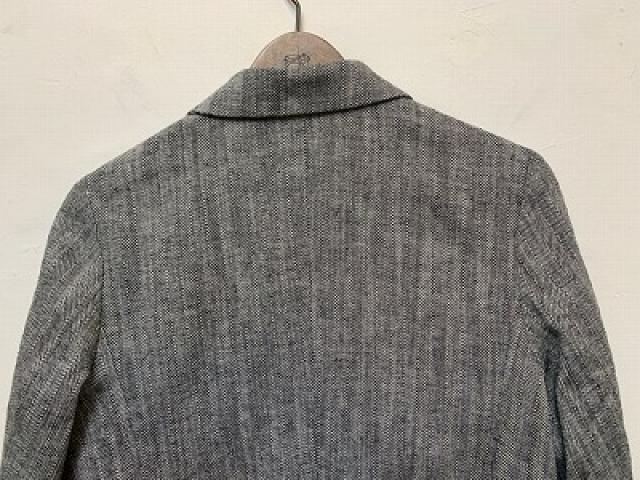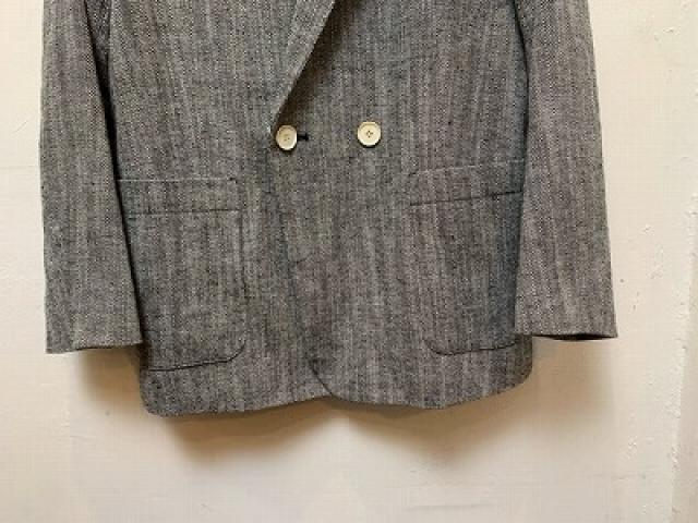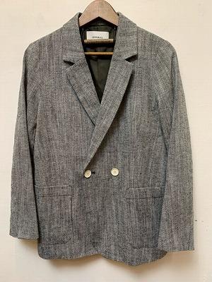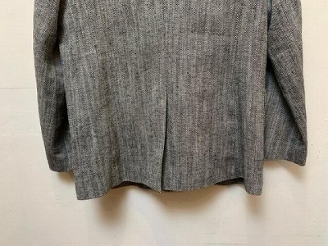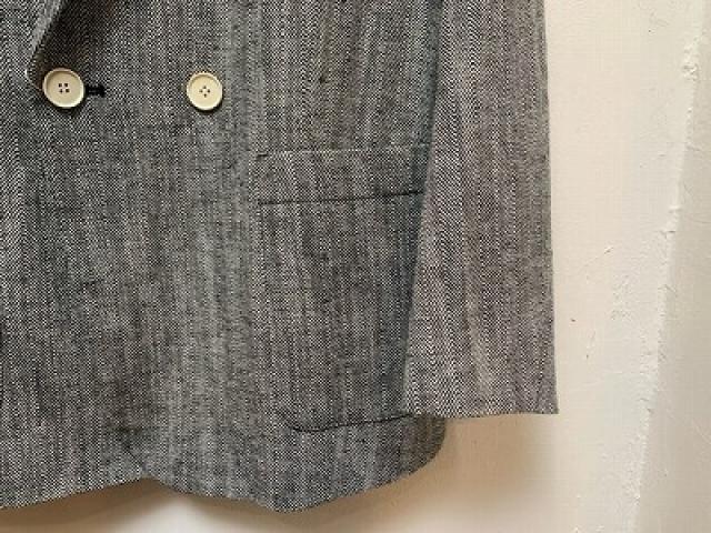 コットンリネンのヘリンボーン生地を使用したジャケット。天然繊維の自然な特性を活かした粗野感のある風合いで、クールな雰囲気に仕上げております。ダブルブレストの前立てで一見かっちりした印象ですが、ゆったりとしたサイズ感、前立てのボタンは上下2段のみにして抜け感をプラス。
