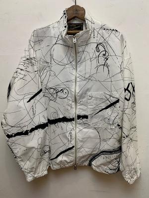 細番手のコットンブロードに総柄プリントを施したオリジナルプリント素材を使用しています。80年代のデザイナーへのオマージュを込めたデザインです。ワイドなたっぷりとした身頃と袖に短めな丈の個性的なシルエットが特徴です。ワイドなミリタリートラウザーズやワークパンツと組み合わせて着用していただきたいアイテムです。