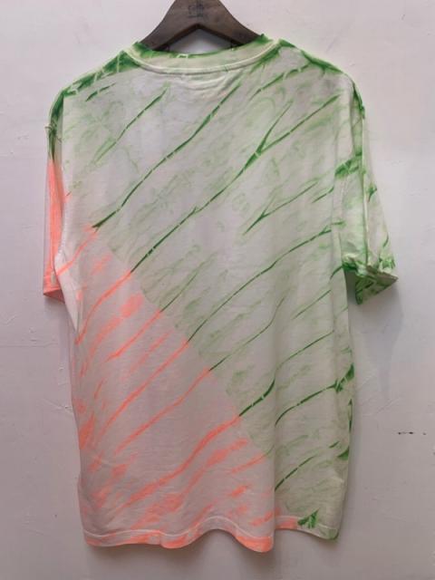 グリーンとピンクの配色が見事な染めのTシャツです。柔らかな肌触りで夏も快適に過ごすことができます。合わせられるアイテムのバリエーションが広く使いやすいアイテムです。