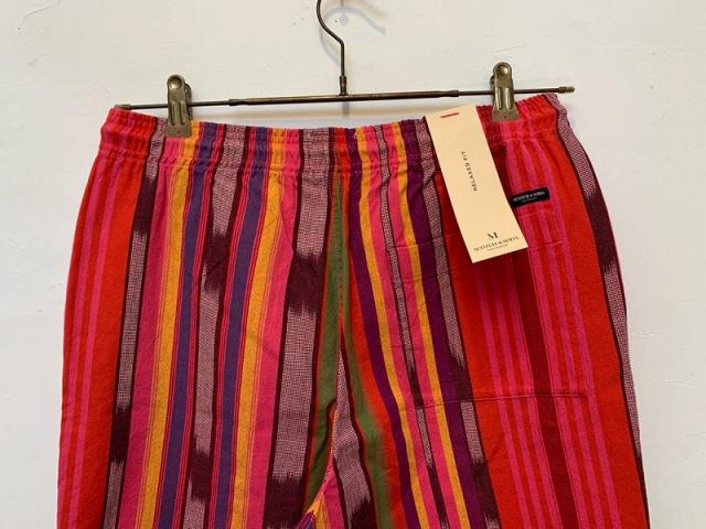 マルチカラーのストライプショートパンツです。赤をベースにした遊び心満載のカラーリングが目を惹きます。個性を引き出し、存在感のあるアイテムです。ウエストはゴムと紐の仕様なのでリラックスして履き続ける事が可能です。