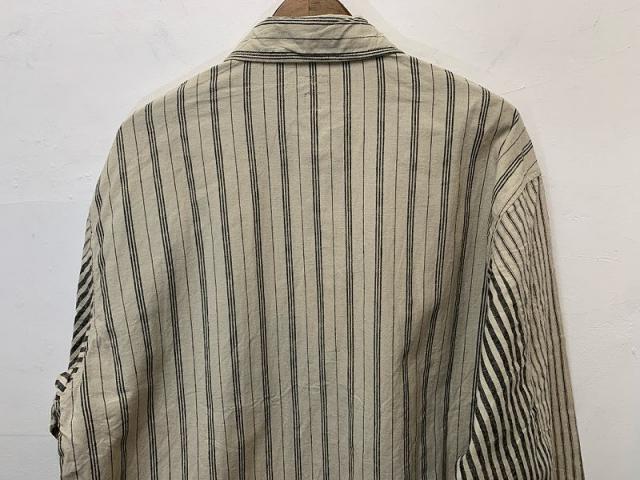 そんなアメリカンヴィンテージをピッチ違いのストライプを使ってヨーロッパの匂いがするアイテムにアップデートして少し色気のあるモダンな仕上がりになっています。9月~10月の立ち上がりから着るにはもってこいのアイテムです。まだ暑い時期には少し色気のあるアイテムがいい気分です。